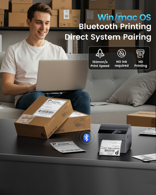 ASprink Bluetooth Shipping Label Printer 4x6, 2025 Upgraded Thermal Label Printer with Built-in Paper Bin, Thermal Printers for Small Business & Shipping Packages, Compatible with Amazon, Ebay, USPS