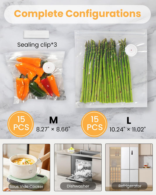 FEPPO Vacuum Sealer for Food with Visible Water Tank, Handheld Saver Compact Vacuum Sealer Machine with 30 Reusable Bags for 6X Preservation & Fresh, Black